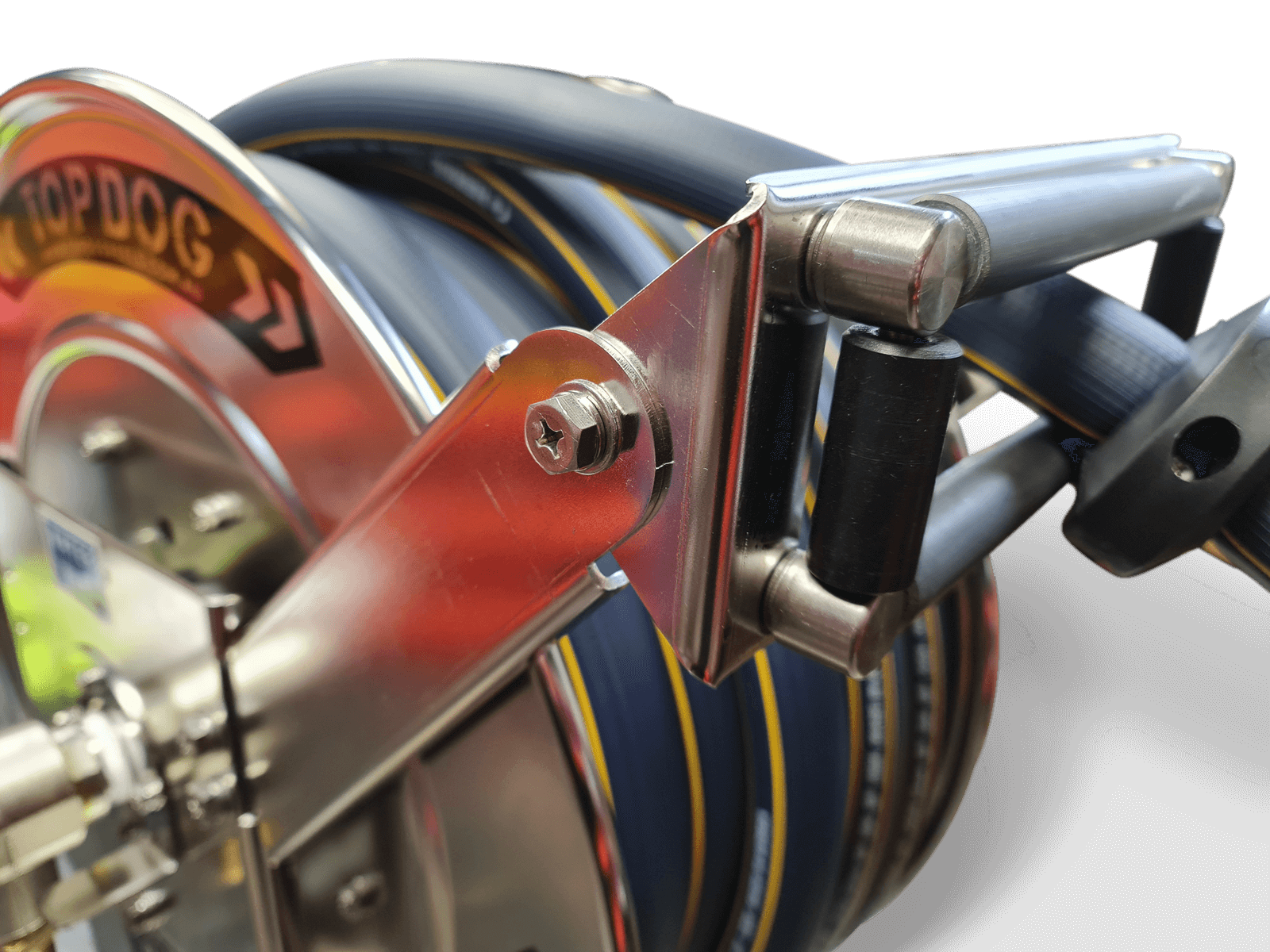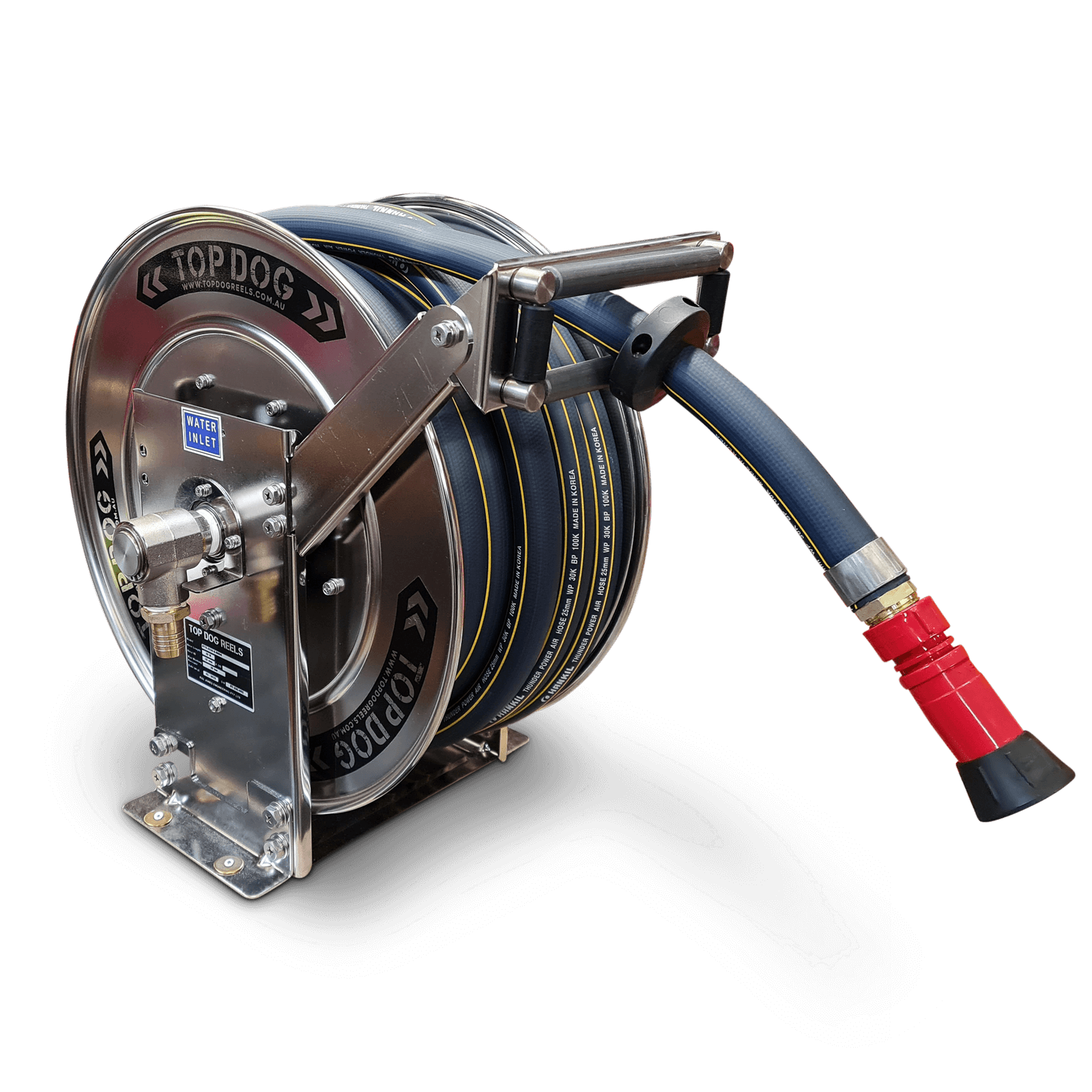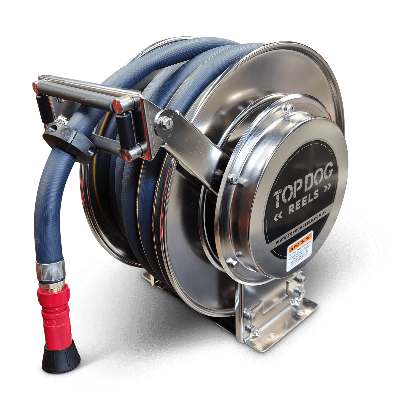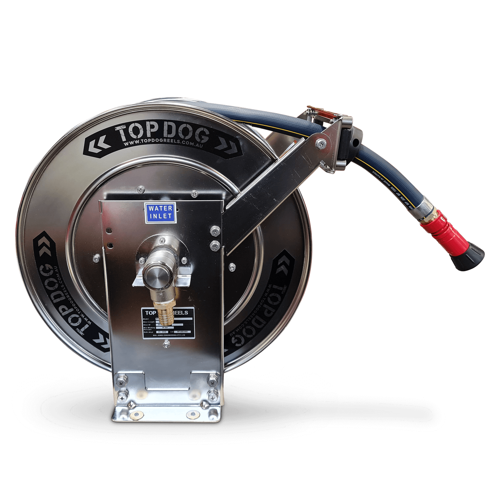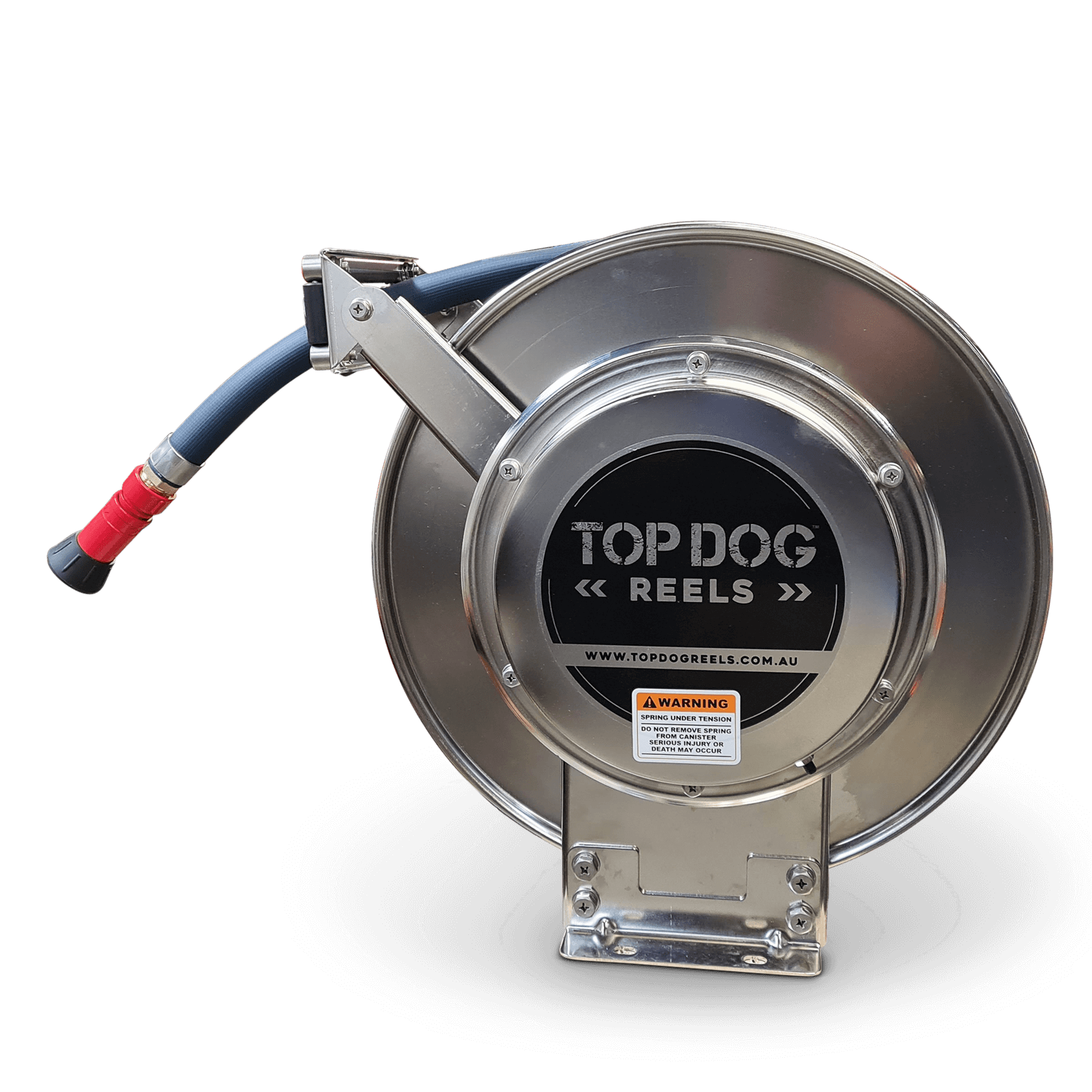 Stainless Steel Spring Rewind hose reels from Top Dog Reels are designed with dust, vibration and the harsh Australian environment in mind.
